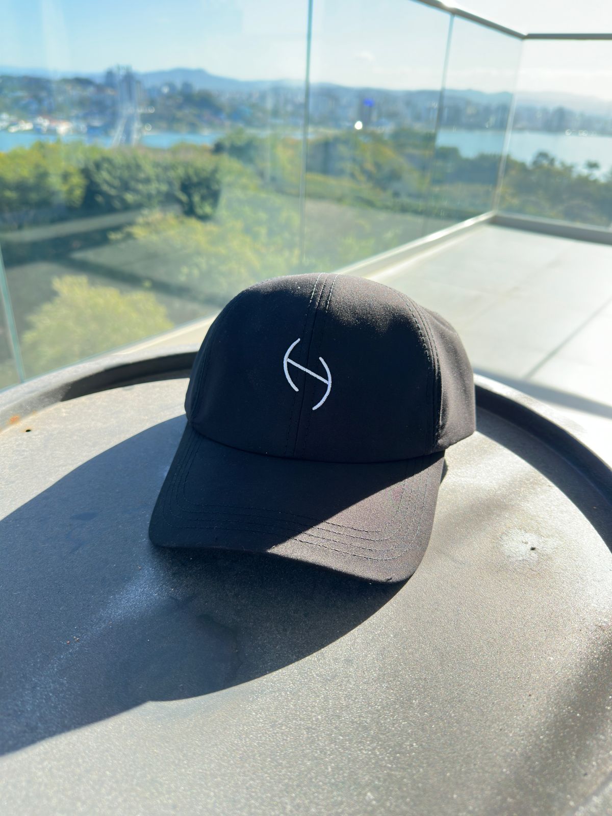 o boné com tecido poliamida, que encaixa perfeitamente na cabeça, ajuste em velcro e extremamente leve.